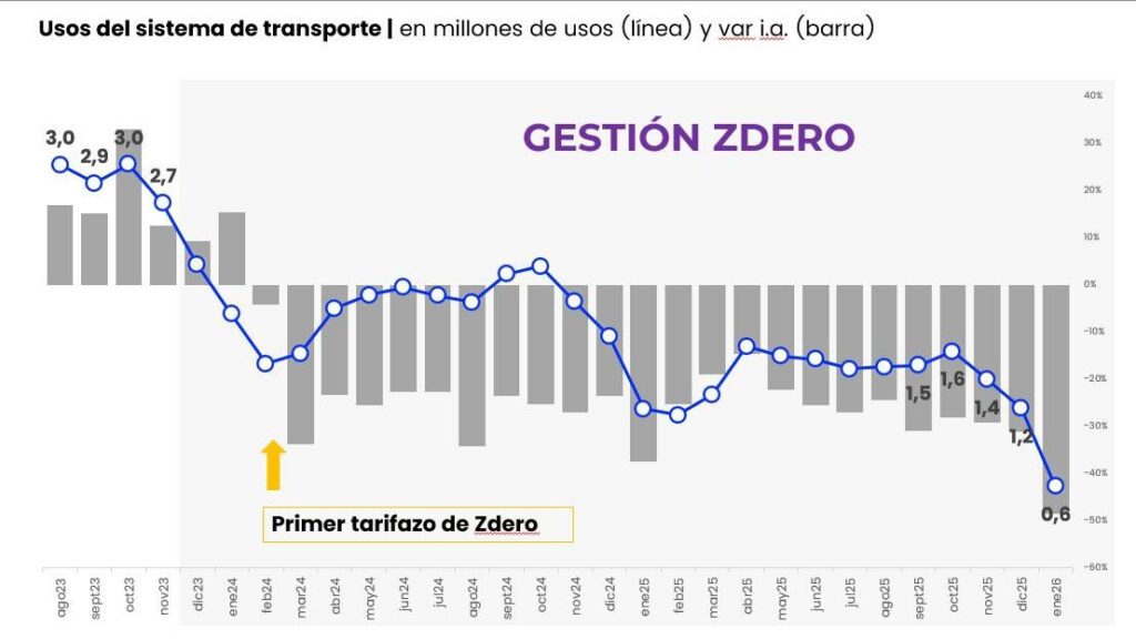 «Cuando dejamos la gestión, el sistema tenía casi 3 millones de viajes por mes. Hoy, bajo la gestión Zdero, apenas se llega al millón de usos mensuales. En poco tiempo, el transporte perdió cerca de un tercio de sus pasajeros», resaltó el legislador de la oposición quien lo atribuyó a dos factores claves: