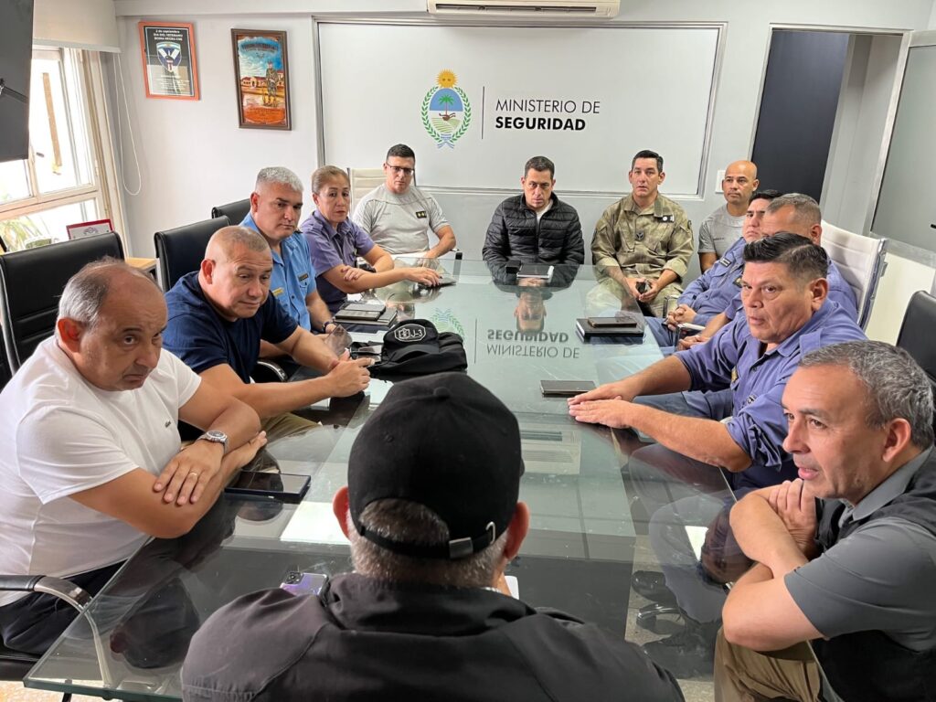 Del encuentro participaron el subsecretario de Seguridad Pública, Juan de la Cruz González; el jefe de la Policía del Chaco, Fernando Romero; el subjefe Manuel Silva; el director del CEAC, Cristian Durán; junto a áreas de Logística, Policía Rural, el Centro Multiagencial, el COE y Bomberos.