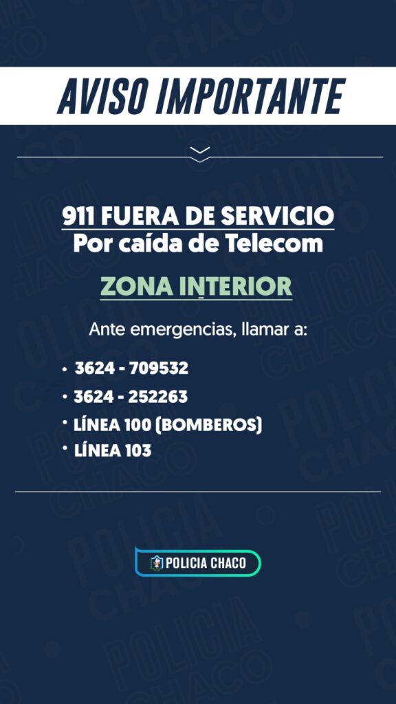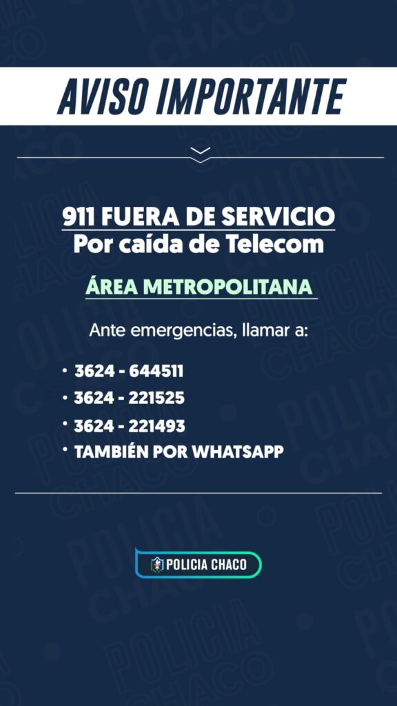 Desde la Policía del Chaco informaron que, debido a esta interrupción, se dispuso un esquema de contingencia con números de telefonía móvil para garantizar la atención de emergencias mientras se normaliza el sistema.