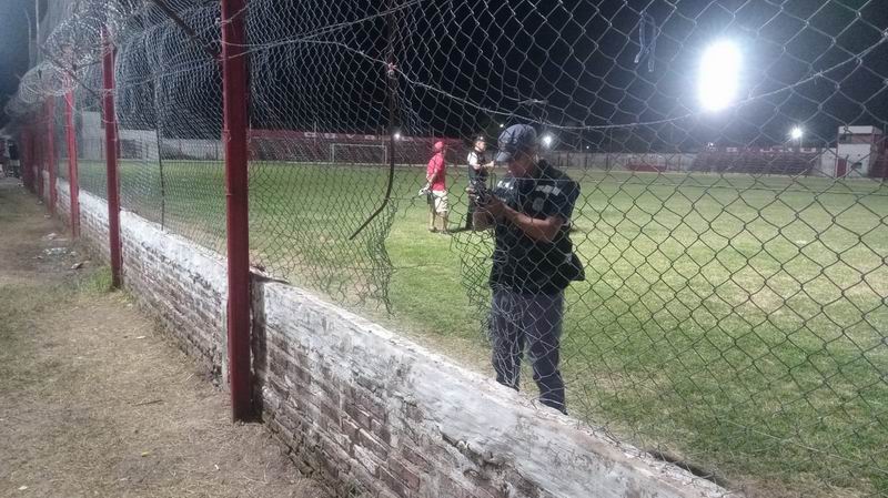 Secuestraron cascotes, restos de ladrillos y otros elementos contundentes, además de registrarse la denuncia del club local por el faltante de una pelota y daños en reflectores.