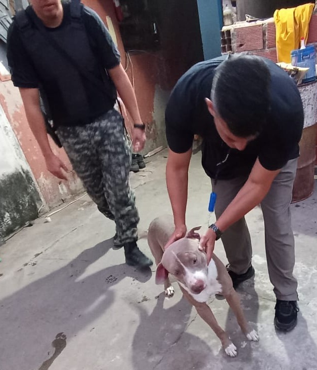 En el lugar, los ocupantes de la vivienda autorizaron el ingreso del personal, constatándose la presencia de tres caninos. Uno de ellos, de raza pitbull, presentaba lesiones visibles; otro, de raza sharpei, también evidenciaba heridas, mientras que un tercero, de raza dachshund, se encontraba en buen estado general.