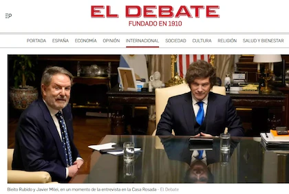 La entrevista en El Debate, realizada en la Casa Rosada durante más de una hora y media, abordó también la política europea, con especial foco en España. Milei profundizó sus críticas al jefe del Gobierno español, Pedro Sánchez, y afirmó: “Si España no estuviera en la Unión Europea, Sánchez la habría destruido”.