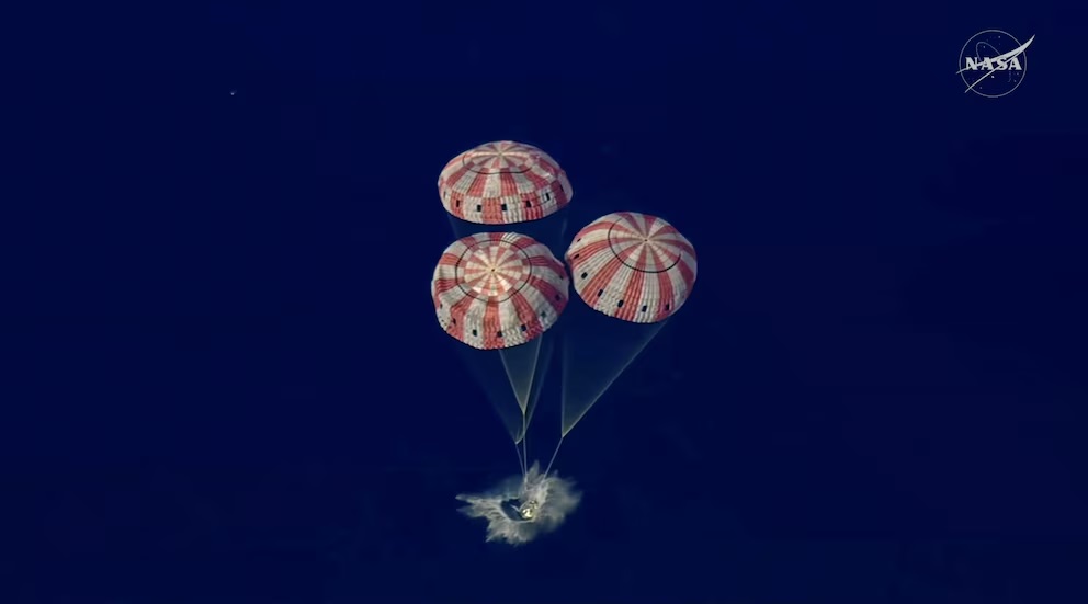 Los astronautas atravesaron las capas atmosféricas a 40.000 km/h y el escudo de Orión soportó temperaturas de hasta 2700 ºC. Los astronautas ya dieron el OK de que se encuentran bien dentro de la cápsula, mientras descienden con los paracaídas.