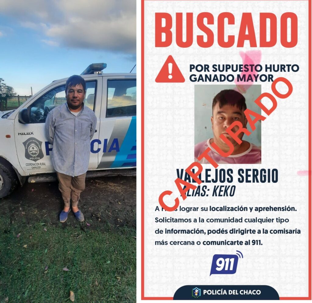 Con la captura y el traslado de Vallejos, la investigación avanza ahora sobre otros posibles integrantes de la organización dedicada al robo de animales en la zona rural chaqueña.