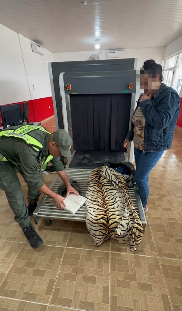 Al momento de solicitar la documentación a una ciudadana de nacionalidad paraguaya, los efectivos percibieron cierto estado de nerviosismo y contradicciones en sus respuestas, lo que motivó a un control más exhaustivo en su equipaje de mano. Mediante el uso del equipo de escáner de la Fuerza instalado en el puesto de control “Gendarme Fermín Rolón”, confirmó las sospechas de los uniformados al mostrar en las pantallas elementos rectangulares dentro del bolso.