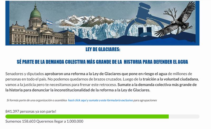 • Ley de Glaciares: juntan un millón de firmas en la mayor demanda colectiva de la historia