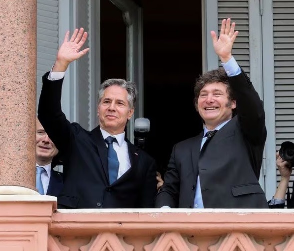- «ARGENTINA DECIDIÓ VOLVER AL LADO DE OCCIDENTE, DEL PROGRESO, LA DEMOCRACIA Y LA LIBERTAD». Fue lo más fuerte que dijo el enviado del Presidente de los EEUU, jefe de la diplomacia del país del Norte. Mantuvo un encuentro de más de una hora con Javier Milei y luego juntos saludaron desde el balcón de Casa Rosada. «Vemos un potencial extraordinario en la Argentina». «Quizá lo más importante es que tienen lo que el mundo necesita y queremos ser socios para ayudar a alimentar y proveer la energía al mundo». Estados Unidos espera «ampliar la asociación con la Argentina en los años venideros». «La conclusión es que Estados Unidos y la Argentina estámos trabajando juntos en casi todos los temas de importancia para nuestro pueblo, pero también para la gente de todo el mundo», remarcó Antony Blinken. Se refirió a las inversiones estadunidenses en el Noroeste argentino. «Queremos crear una cadena de suministro a minerales críticos como el litio. Nuestras compañías harán inversiones importantes, sobre todo en el Noroeste. Estos proyectos van a generar empleo, mejorar la competitividad y un clima más resiliente», aseguró el funcionario estadounidense. Habló de la dolarización que promueve Milei y sobre si Estados Unidos apoyaría ese proceso. «Es una decisión de la Argentina», indicó. El trabajo que se está haciendo para estabilizar la economía es esencial. «Argentina puede contar con nosotros en la medida que se trabaje para estabilizar su economía, mejorar el entorno empresarial y derribar barreras. Vemos un potencial extraordinario y queremos que las empresas de EEUU sean socias de la Argentina».